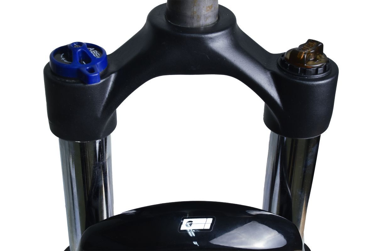 • Вилка GRINZ ES 456 HLO 27,5"*1.1\8" ход 100мм, локаут гидравлический, предварительное сжатие, алюминиевая, черная\белая, 2,8кг